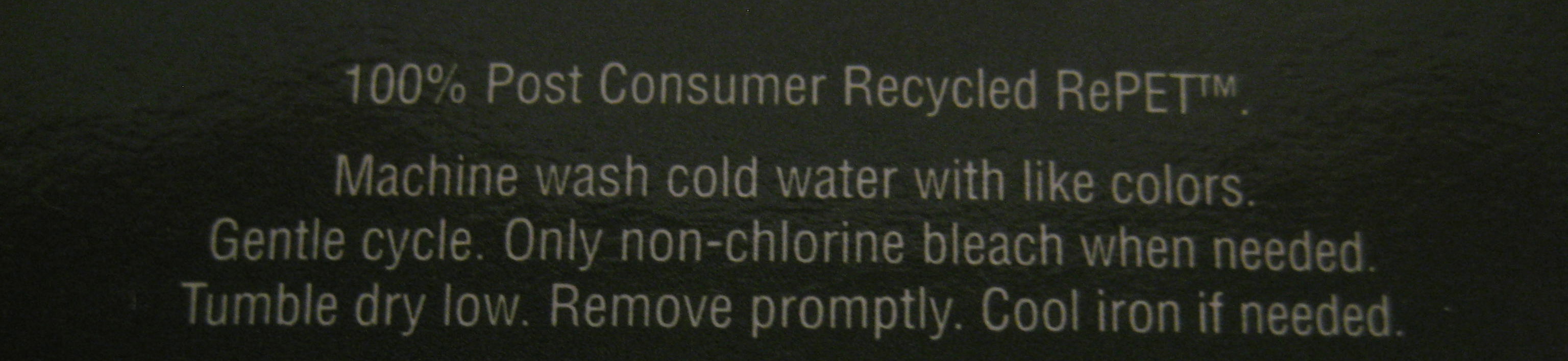 100% Post Consumer Recycled RePET. What??? Plastic bottles? Yep, 100% plastic bottles, people. Read more about the material here – it blows my mind. The fabric is pliable – you’ll absolutely never guess that it comes from what would otherwise would be landfill. Kohl’s sells this particular version.